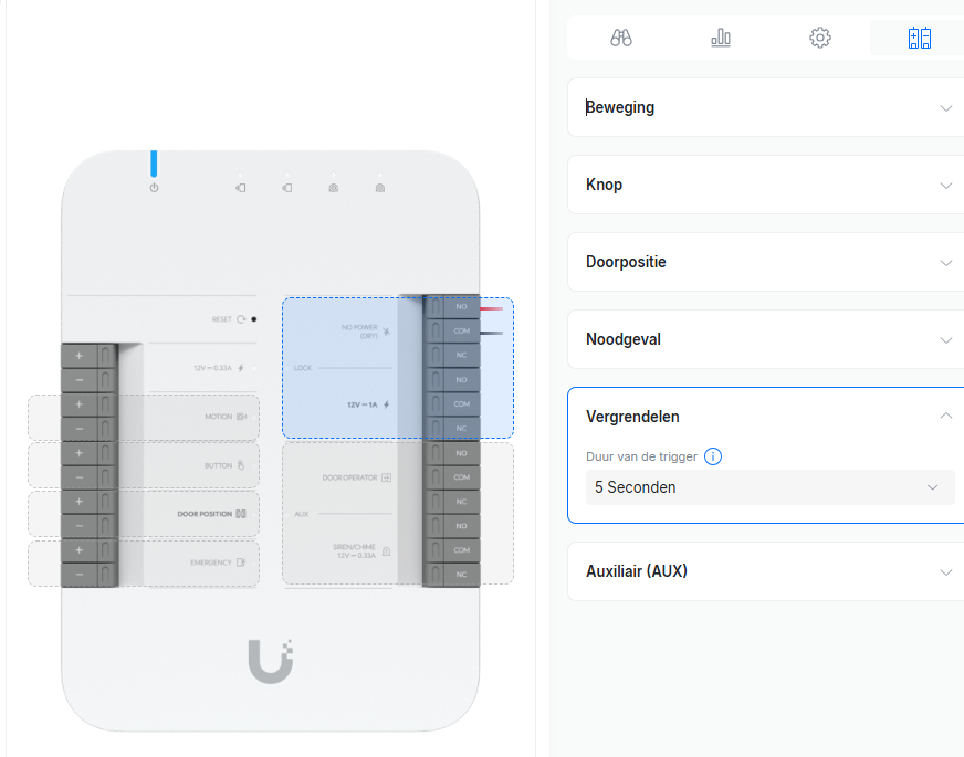 Hierna zal de intercom of access reader wanneer deze een unlock stuurt de deur/slagboom of hek openen.
